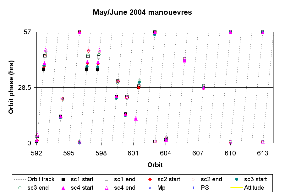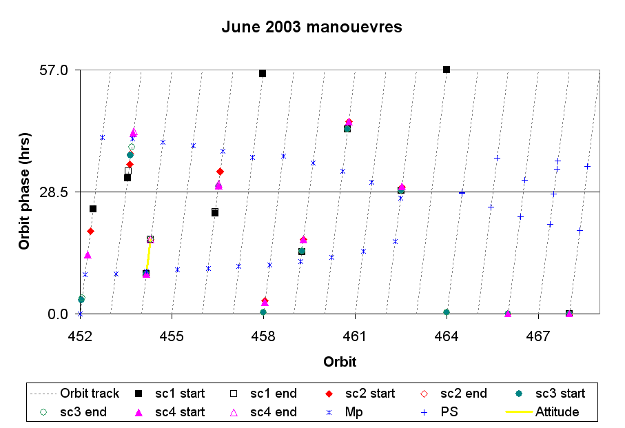 manoeuvres to adjust the attitudes of the four Cluster spacecraft.